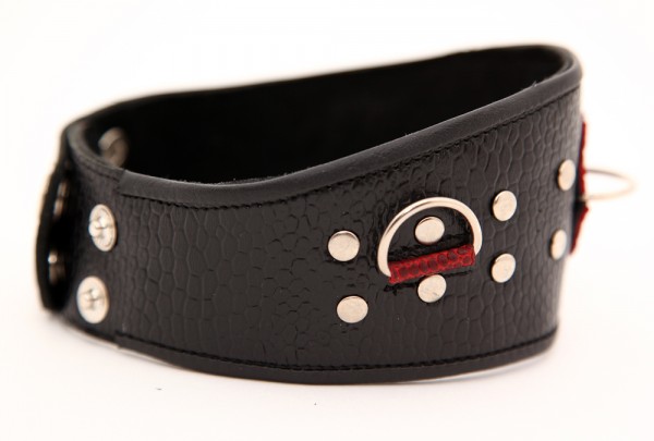 натуральная кожа, черно-красный, на заклепках
