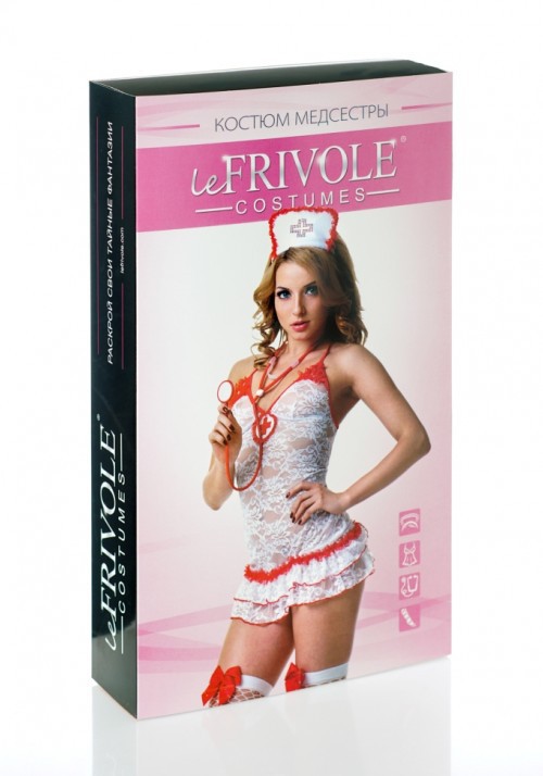 - Потря­сающее пла­тье, выпол­нен­ное из неж­нейшего белого кру­жев­ного мате­ри­ала и деко­ри­ро­ван­ное крас­ным кру­же­вом и крас­ной строч­кой. Ого­лен­ная спинка и при­от­крытые яго­дицы све­дут с ума Вашего паци­ента! Эмблема с крас­ным кре­стом на груди создаст акцент на бюсте. Пла­тье на регу­ли­ру­емых бре­те­лях, что поз­во­ляет добиться иде­аль­ной посадки