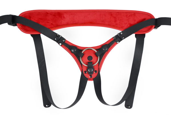Выполнены трусики из высококачественной экокожи в черно-красном цвете. Барахатный внутренний слой влагопоглащающий. Модель "джоки" с открытыми ягодицами позволяют получать удовольствие Страпонессе во время процесса! Регулируемые ремни и пряжки позволяют добиться идеальной фиксации трусиков на теле