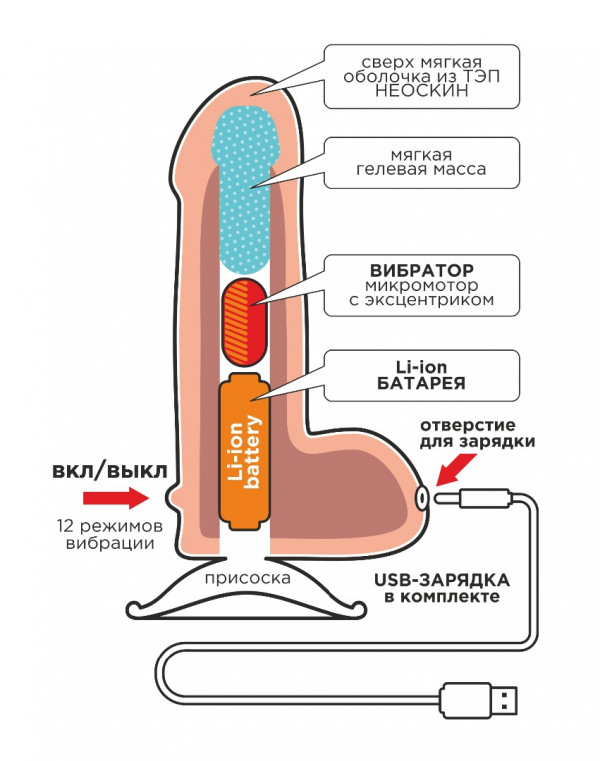 Выполнен фаллос из двухкомпонентного материала неоскин, в котором внутренний слой более твердый, а внешений мягкий, нежный и бархатистый, что в целом обеспечивает максимально реалистичные ощущения!